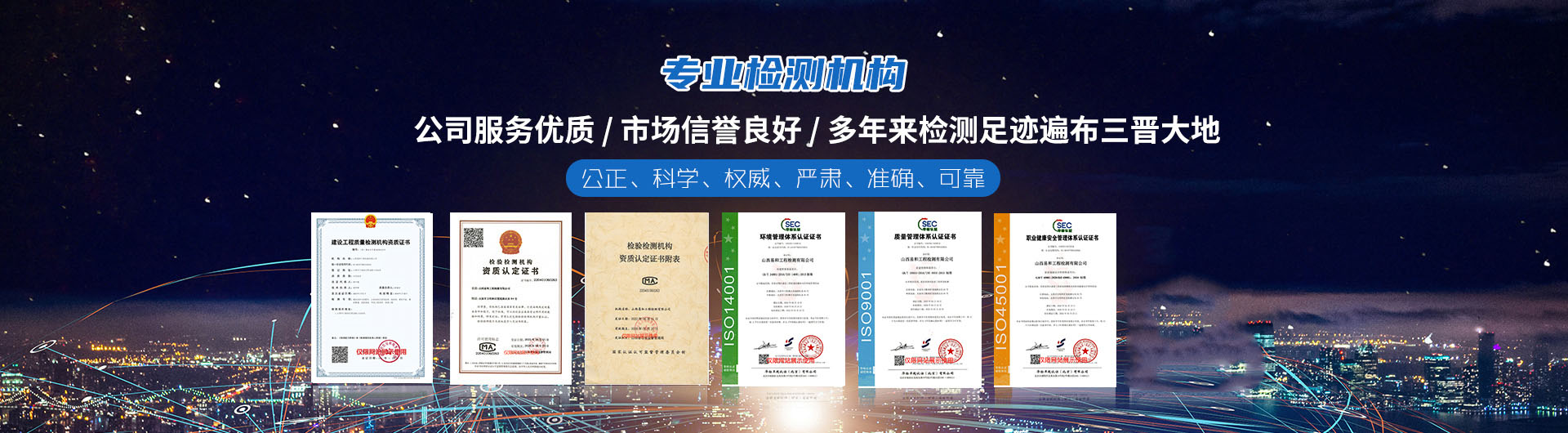 山西易和工程检测有限公司依法成立于2006年5月,注册资本金271万元,占地面积2800平米。经山西省住房和城乡建设厅与山西省人民防空办公室批准,通过山西省市场监督管理局计量认证(CMA),先后获得全国建筑业AAA级信用企业(检测机构)、2021年度山西省示范建设工程质量检测机构等多项荣誉,是一所具有建筑材料及构配件、主体结构及装饰装修、钢结构、地基基础、建筑节能、建筑幕墙、市政工程材料、道路工程、人防工程9 个专项资质的专业检测机构。